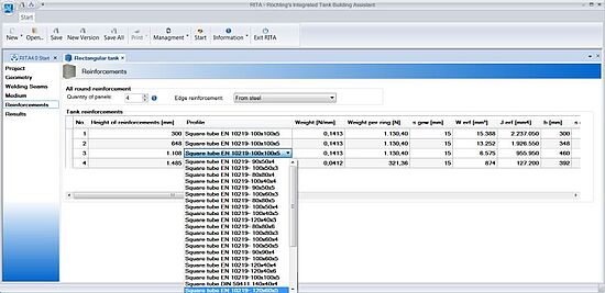 Rectangular tank planning has also been simplified by the new option of specifying the minimum wall thickness for specific types of tanks in the programme. RITA® 4.0 calculates the necessary steelwork for a given wall thickness. At the same time, users can use the new steel profile management tool to store individual profiles in the system and incorporate them into the calculation. "These functions help tank builders to plan rectangular tanks in a way that is more flexible and tailored to individual needs," explains Schüer.