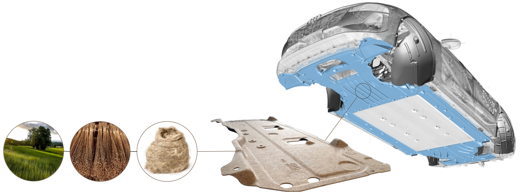 The use of renewable raw materials saves significant amounts of CO₂. An underbody with natural fibers reduces the ecological footprint by around 40 percent. The energy required for production even decreases by 80 percent.