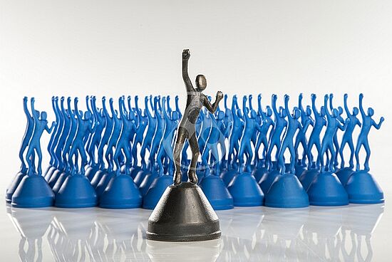 Bronze original and highly detailed plastic counterparts: Röchling has made the blue figures in 3D printing in a short run; they were presented to all members of the winning team