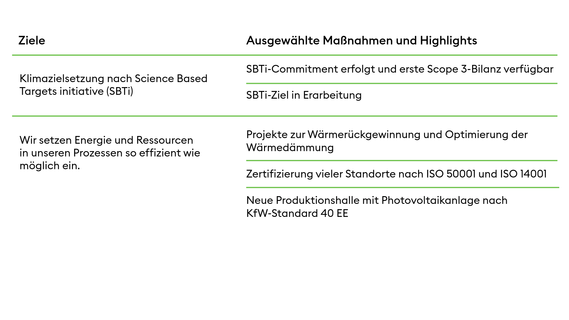 DIN EN ISO 50001 - Energiemanagement: Der bewusste Umgang mit Energie und Ressourcen ist in unseren Unternehmensleitlinien fest verankert. Die DIN ISO 50001 beschreibt die Anforderungen an Unternehmen zur Einführung und Umsetzung eines Energiemanagementsystems. Wir erfassen und steuern unsere Energieströme systematisch nach den Anforderungen der Norm. So können wir regelmäßig Einsparpotenziale identifizieren und unsere Ressourcen nachhaltiger nutzen.