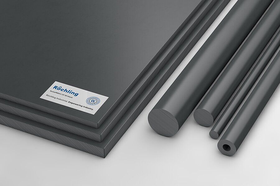 Mit SustaPEEK CF 30 bietet Röchling gepresstes und extrudiertes PEEK mit 30 Prozent Carbonfaserverstärkung an. Dieses macht Bauteile dauerhaft gegen hohe meachanische Belastungen standhaft.