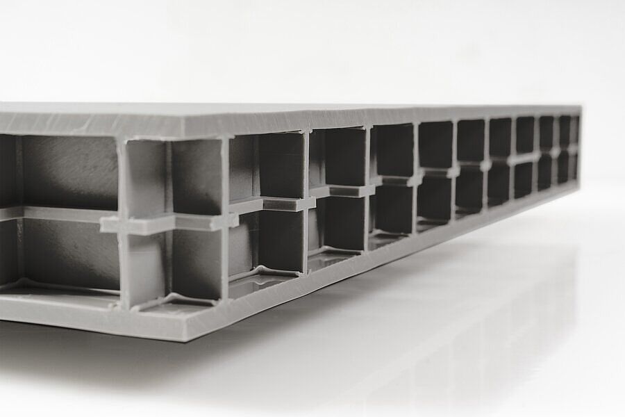 Polystone® PPs CubX®: Polystone® PPs, schwer entflammbare Variante (B1) für sensible Anwendungsbereiche.