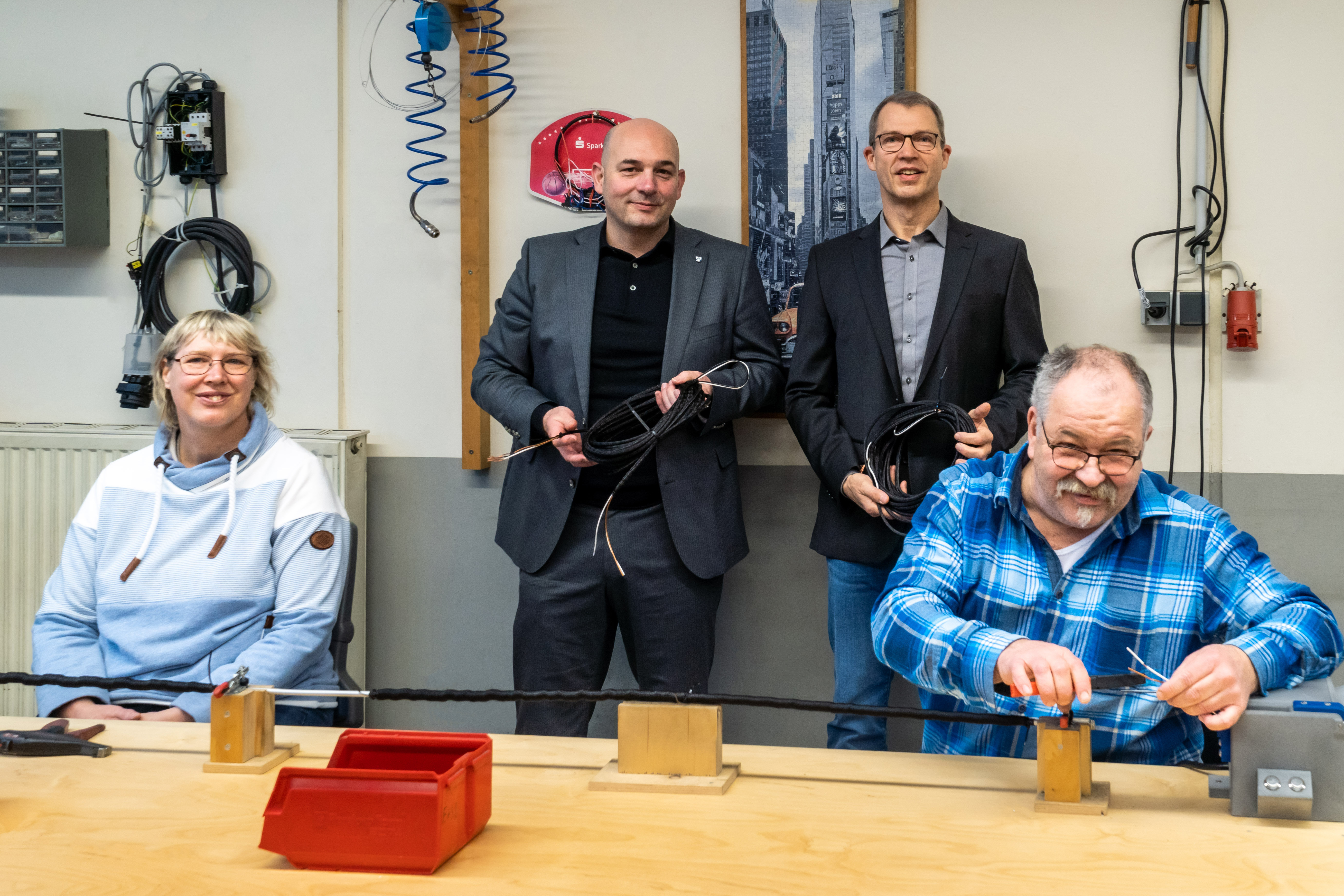 Vitus in Meppen unterstützt Menschen mit Behinderungen und fördert Selbstbestimmung und Teilhabe – unter anderem durch die Beschäftigung in der Werkstatt. „In einer unserer Gruppen montieren wir Kabelbäume für einen externen Auftraggeber in unterschiedlichen Längen. Bislang haben zwei Beschäftigte an einem Kabelbaum gearbeitet – einer hat das Kabel gezogen, der andere die Länge auf einem analogen Messgerät abgelesen“, erklärt Manfred Schwenen, technischer Leiter der Vitus Werkstatt an der Zeissstraße in Meppen. Das habe immer wieder zu Problemen geführt. „Einerseits war die Zusammenarbeit und Verständigung teilweise schwierig, andererseits war das Messgerät ungenau und des Öfteren defekt. Die Folge war, dass einige Kabelbäume reklamiert wurden.“