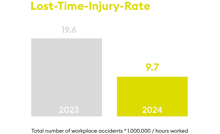 Sistemáticamente aplicamos diversas medidas para mejorar continuamente la seguridad laboral y mejorar la salud de nuestros más de 11.700 empleados en todo el mundo. La salud de nuestro personal es nuestra máxima prioridad y está firmemente anclada en nuestras normas de empresa.