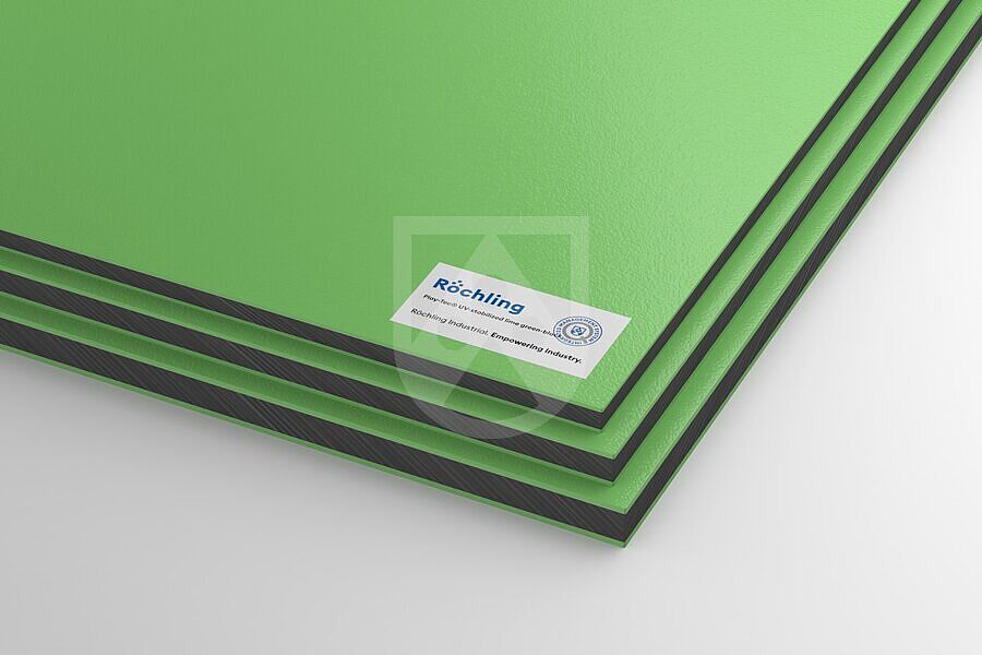 455768Play-Tec® UV-stabilized PCR bicolor extruded sheet sheet bicolor lime green/black/lime green19 x 1220 x 2440 mm 2,440 mm 1,220 mm 19 mm