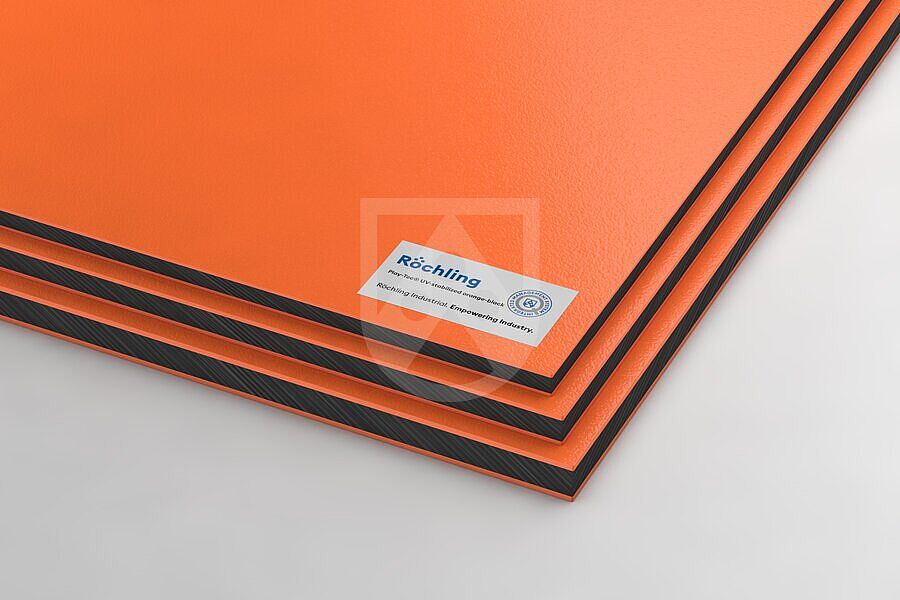 462106Play-Tec® UV-stabilized PCR bicolor extruded sheet sheet bicolor orange/black/orange19 x 1220 x 2440 mm 2,440 mm 1,220 mm 19 mm