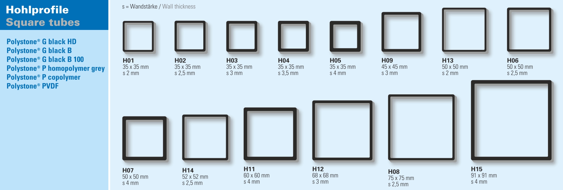 Polystone® square tubes and U-profiles are manufactured from the same molding material, such as the associated welding rods and the sheets.