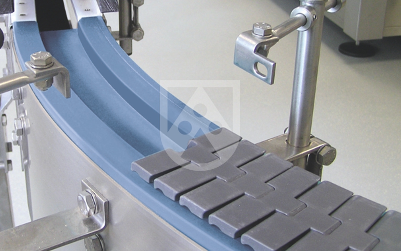 Anti-static sliding material coloured, for the design of economical and safe conveyor systems for transporting sensitive goods.