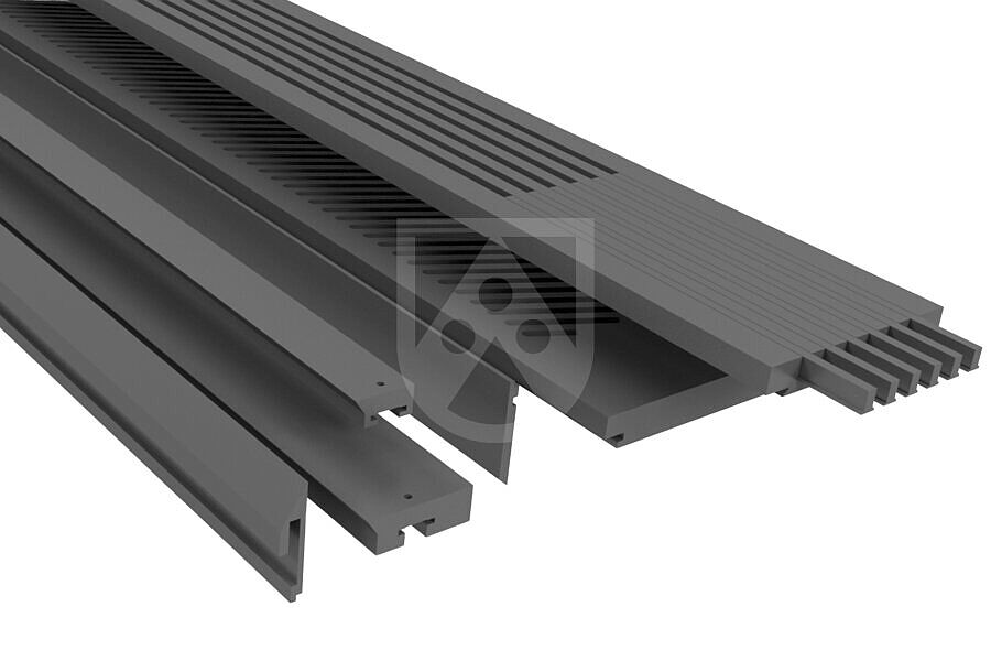 Colour gray. PE-UHMW with molybdenum sulfide dry-film lubricant. Developed for dewatering elements in the paper industry. The dry-film lubricant content ensures a low coefficient of friction and extremely low adherence.