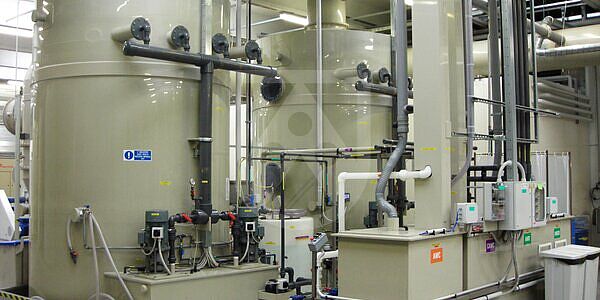 Process tanks - Made of Polystone® P Homopolymer grey, the process tanks for the galvanic system for treatment of aluminium parts will resist the high usage temperatures and chemicals used.
