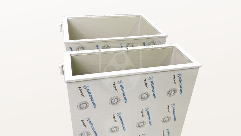 The sheet, which was specially developed for tank construction, is also suitable for permanent contact with a large number of chemical media thanks to the proven chemical resistance of Röchling materials. The considerable reduction (up to 100%) of steel reinforcements that would otherwise be required for thermoplastic rectangular tanks also results in significant time savings in tank manufacturing.