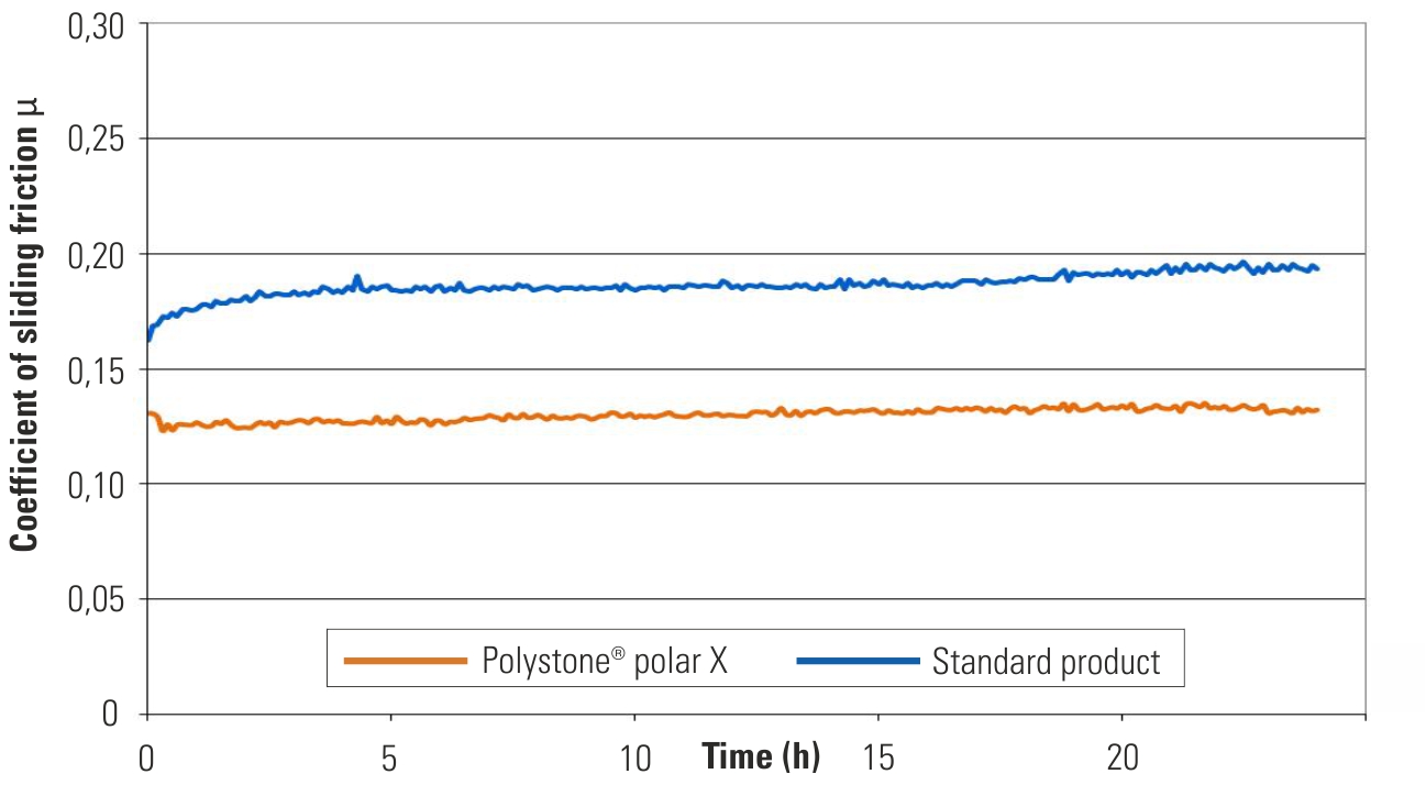 Long-lasting: Polystone® polar X offers lasting and consistent surface properties. There is no decline in the sliding action due to migration of lubricants.