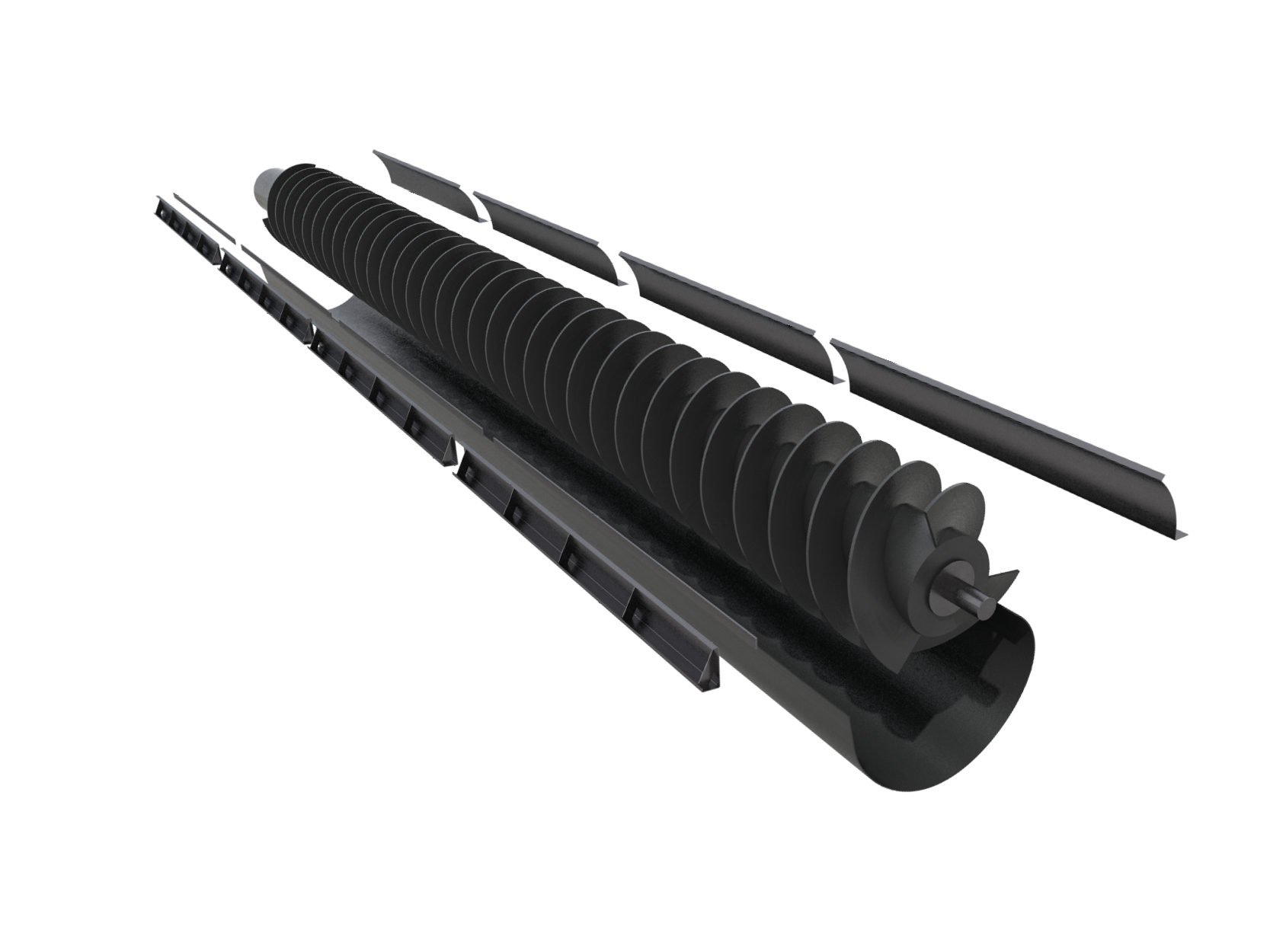 Unlike conventional steel screws, minor damage to RobaScrew lifting screws is not a problem, as there is no corrosion protection that could be compromised. The minimal clearance required for RobaScrew lifting screws in the steel trough has a positive effect on efficiency — especially when compared to classic steel lifting screws. Combined with their significantly lower weight, RobaScrew lifting screws achieve a higher hydraulic efficiency than conventional steel screws, depending on the water level.