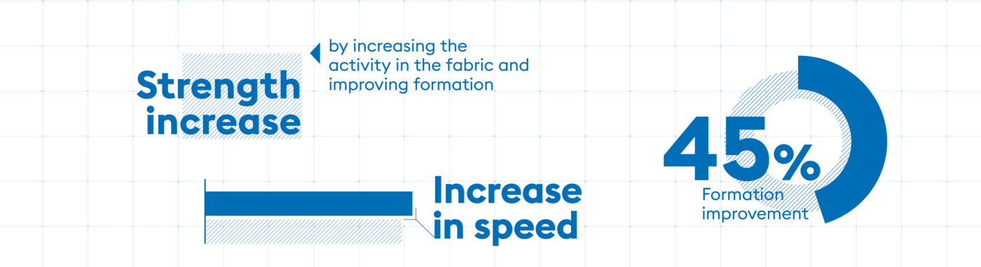 In more than 60 installations, it has already been possible to increase the formation and thus improve the paper quality. Formation improvements of up to 45 % and strength increases of up to 22 % in the standard strength values (RCT CD | SCT CD | CMT |...) can be achieved