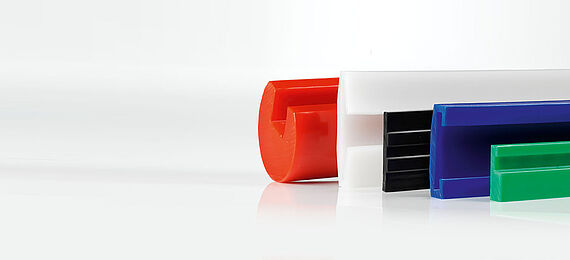 Mainly in sliding and conveying elements in conveyor technology. For example, in the beverage, packaging, pharmaceutical and food industries as well as in crane, lift and automation technology.