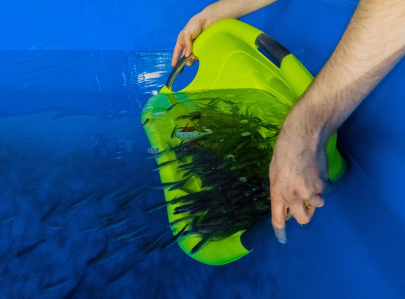 The very first fish in the prototype: the European seabass are two months old when they are put into the tanks