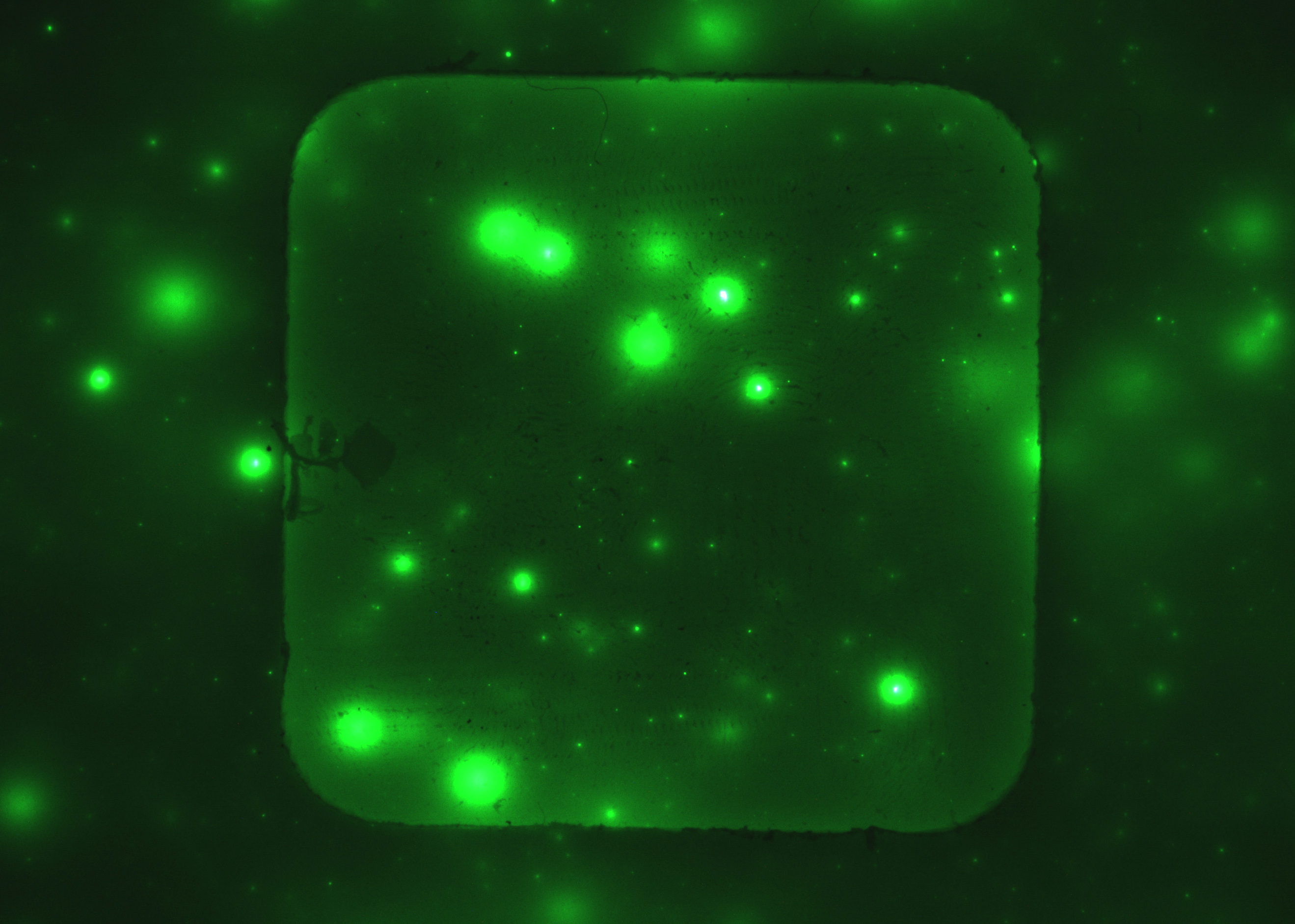 Identification: The square recess is the reference surface where the particle pattern is detected.