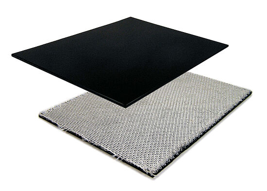 New development for ventilation construction: Thanks to the knitted glass fibre on the back of the plate Polystone® PPs EL GK can be very easily and firmly bonded to other materials.