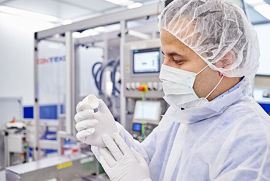 In the clean room: Inspection of the plastic lids for the latest standard container range from the Medical division