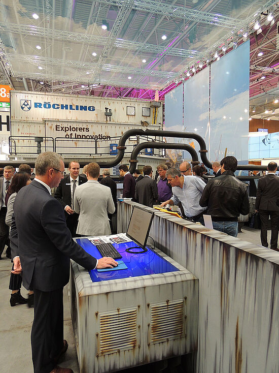 With the unique stand concept Röchling wants to show how the plastic processor understands the innovation process. The search for new solution approaches must take place in cooperation with the customer in the deep "abysses", where the innovative treasures are slumbering and waiting to be lifted - in direct dialogue with the customers. The response of the professional visitors to the extraordinary concept was extraordinary. They came from almost all industrial sectors, where Röchling products are used. In numerous talks, the Röchling employees were able to convincingly convey the wide range of products and the application know-how and to discuss new challenges with the customers.