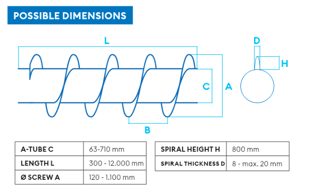 - Spiral height H: 800 mm