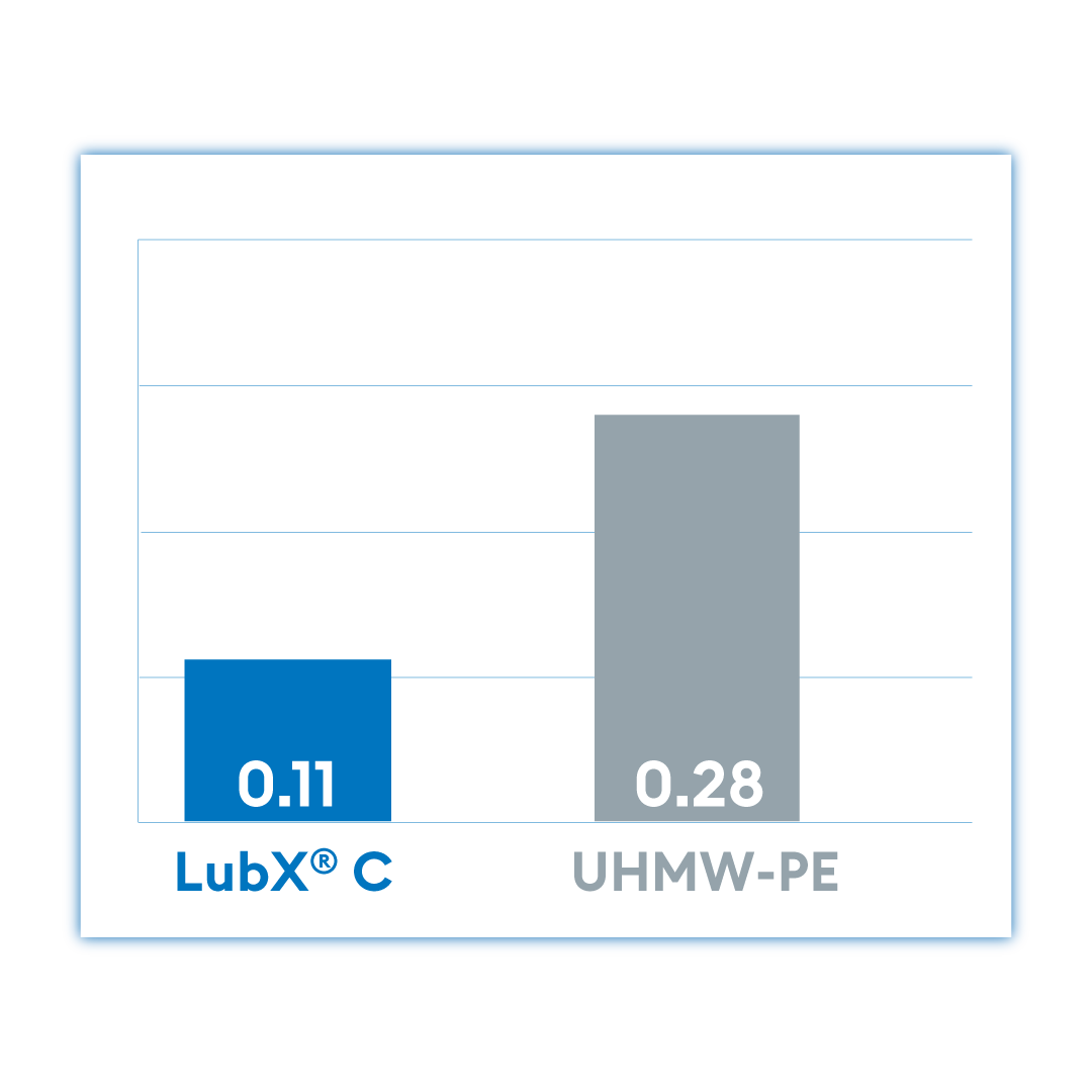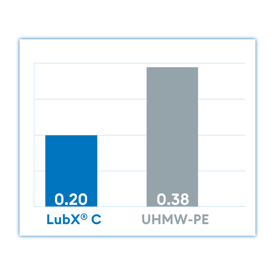 LubX® C features up to 75% lower coefficient of friction than standard UHMW.