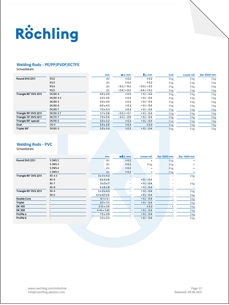 To match our extensive range of sheet materials, we offer welding wires made of PE, PP, PVC, PVDF in our brand materials Polystone® (PE & PP) and Trovidur® (PVC). They are optimally matched to the sheet material to be welded and in that way permit a permanently secure connection. They can be easily welded using any common thermal welding process.