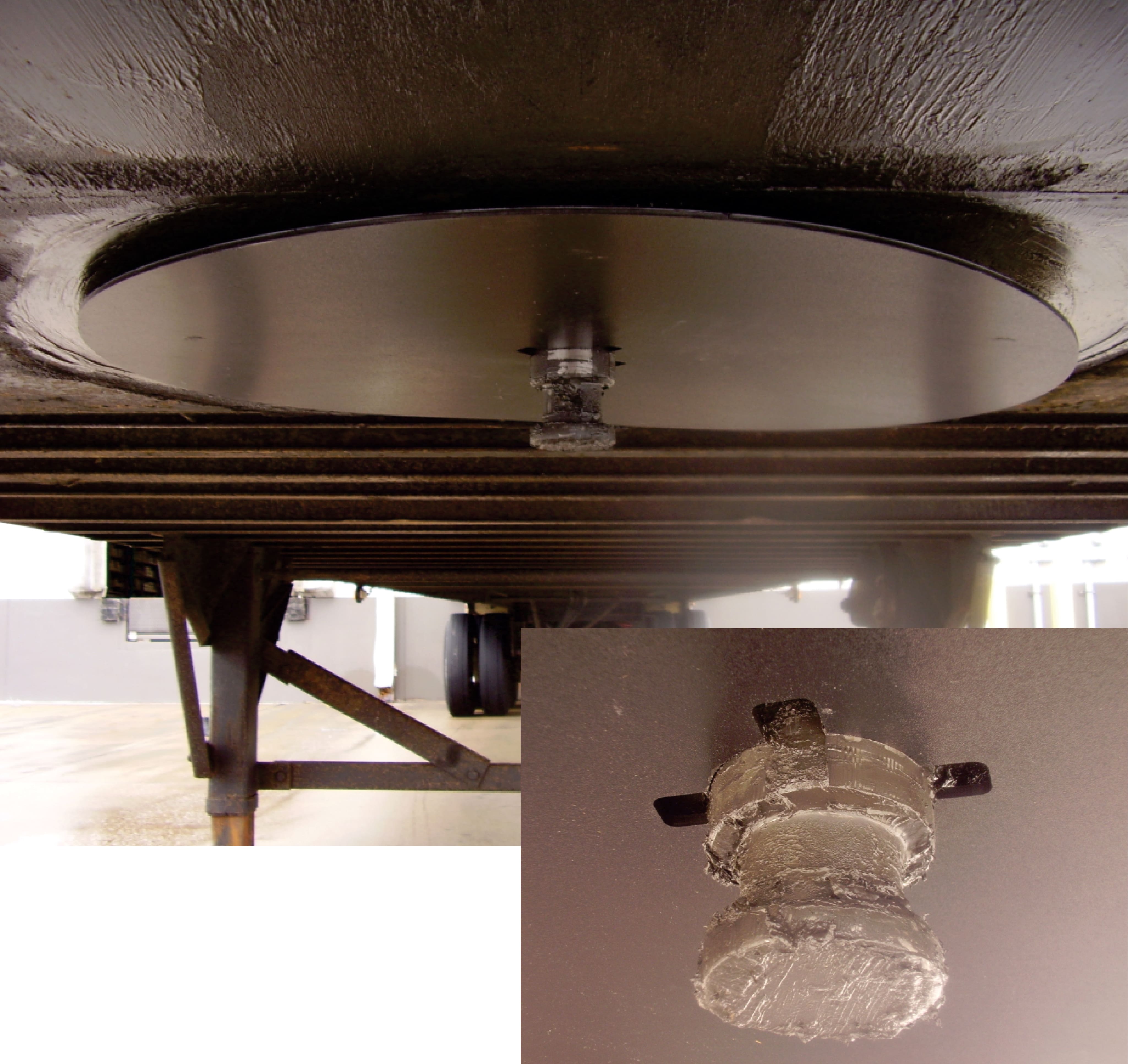 NOTE: This lube disk is intended for use on trailers with a standard 2.875" diameter king pin, which is not worn or undersized. Roechling does not guarantee a successful installation on all king pins. Always ensure a successful lock between the fifth wheel and king pin prior to any trip.